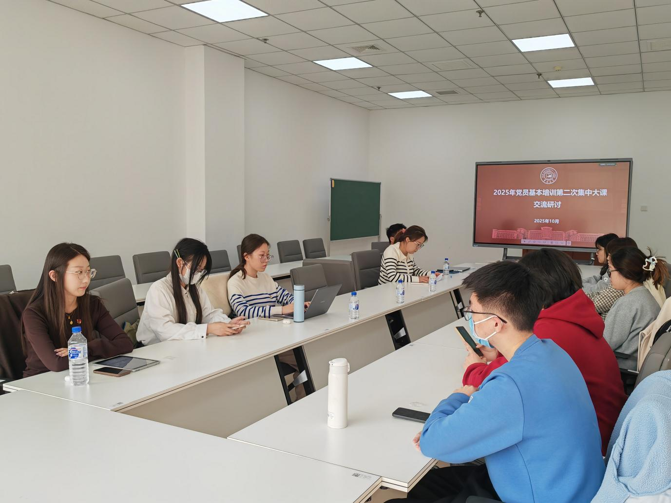 2025年10月14日,在紧密结合学校2025年党员基本培训第二次集中大课的基础上,围绕“做有理想、敢担当、能吃苦、肯奋斗的新时代青年”主题,历史文化学院本科学生党支部在中心图书馆203会议室召开第二次集中大课交流研讨。党支部全体党员参加本次交流研讨,由支部书记王可佳主持。