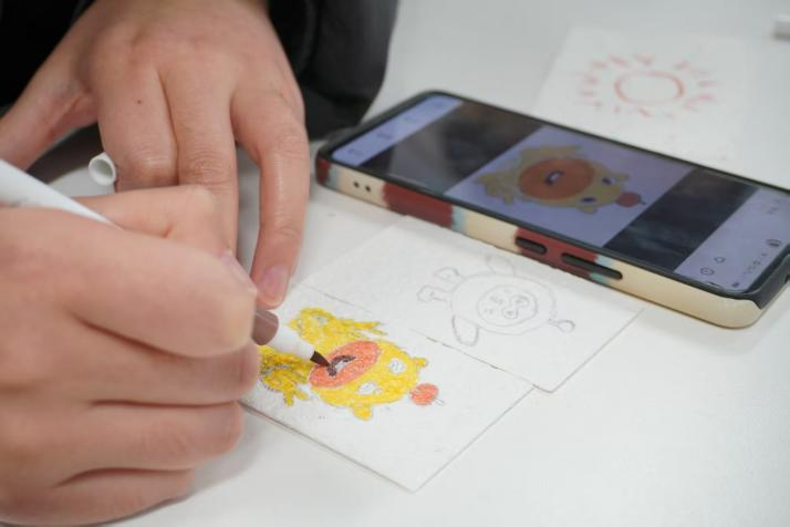 在轻柔的音乐中,同学们全心投入创作。剪裁、塑形、上色、点缀……平凡的绵片在指尖被赋予独特的意义与生命。无论是可爱的卡通形象,还是抽象的情绪表达,每一件作品都是内心世界的真实投射。添加舒缓香氛的环节,更让视觉、触觉与嗅觉共同参与这场疗愈之旅。