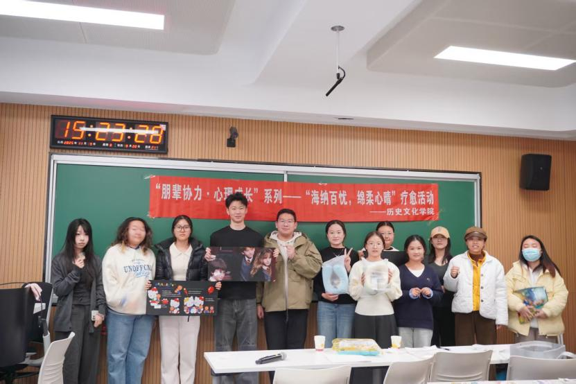 在秋意渐浓的十一月,由吉林大学学生心理健康指导中心主办、历史文化学院承办的“海纳百忧,绵柔心晴”艺术疗愈手工体验活动,于2025年11月9日在逸夫楼111温情开展。本次活动以压缩木浆绵片(捏捏乐) 为创意媒介,旨在通过沉浸式手工制作,帮助同学们释放情绪、舒缓压力、提升自我觉察能力,在柔软的触感中,开启一场与自己情绪的温柔对话。