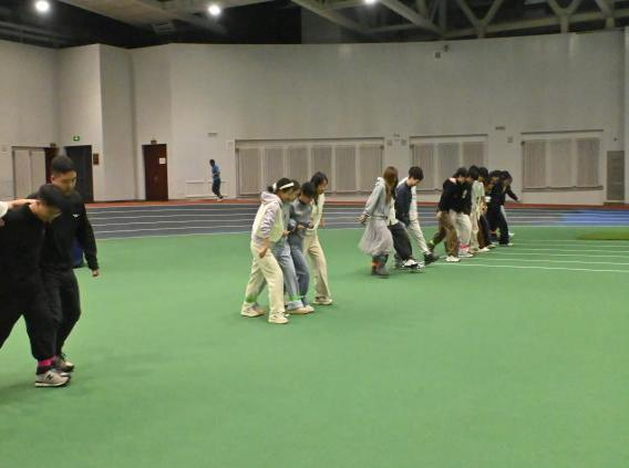 在“信任盲行”环节,世界仿佛被按下了静音键,只剩下队友的声音在耳边指引。当视觉被遮蔽,恐惧与不安袭来,是队友清晰坚定的口令成为了唯一的“光”。同学们在黑暗中试探、前行,直至完全交付信任,甚至敢于在盲视状态下小跑冲刺。这一刻,人与人之间的隔阂逐渐消融,心与心的距离无限贴近。