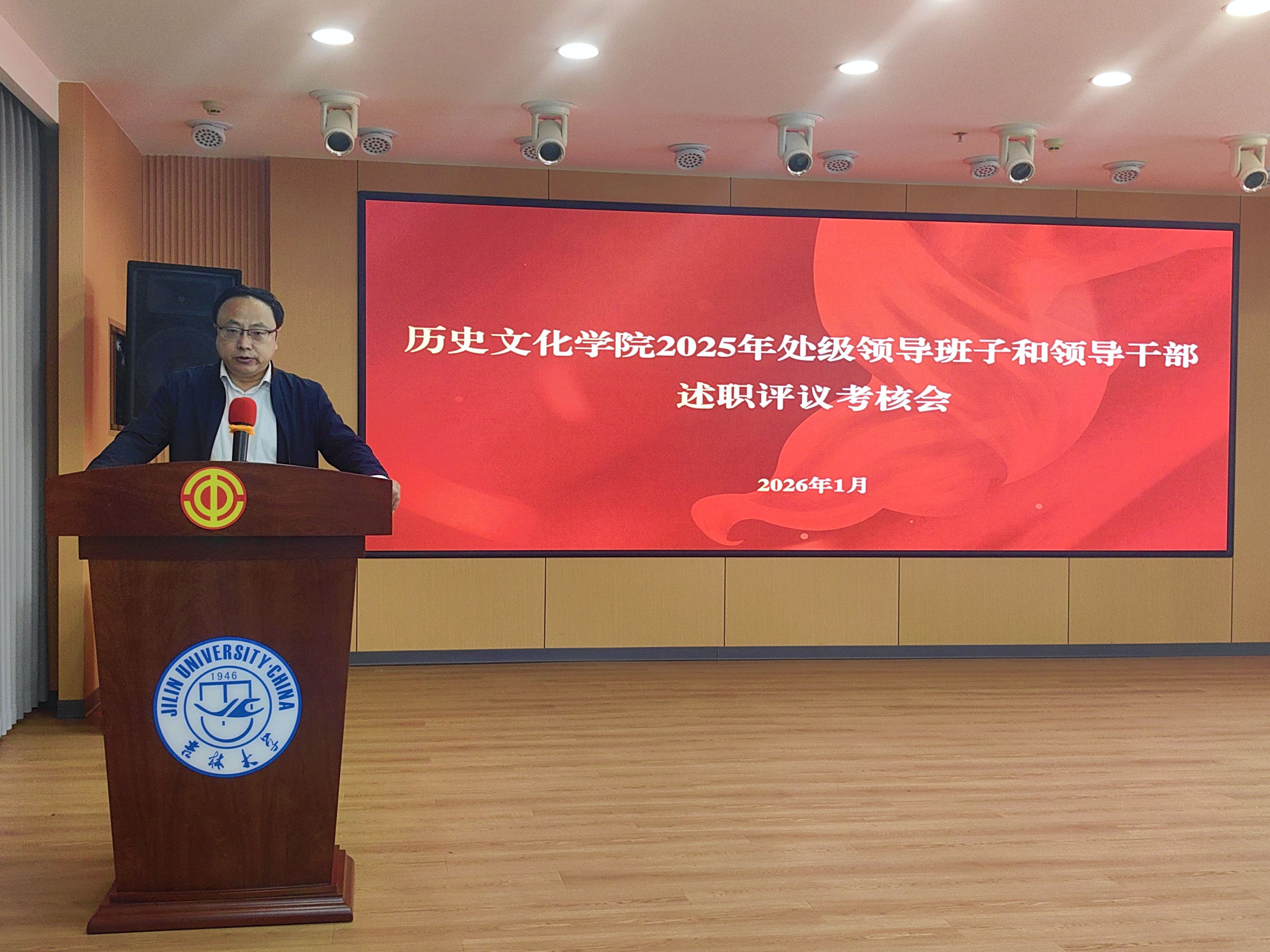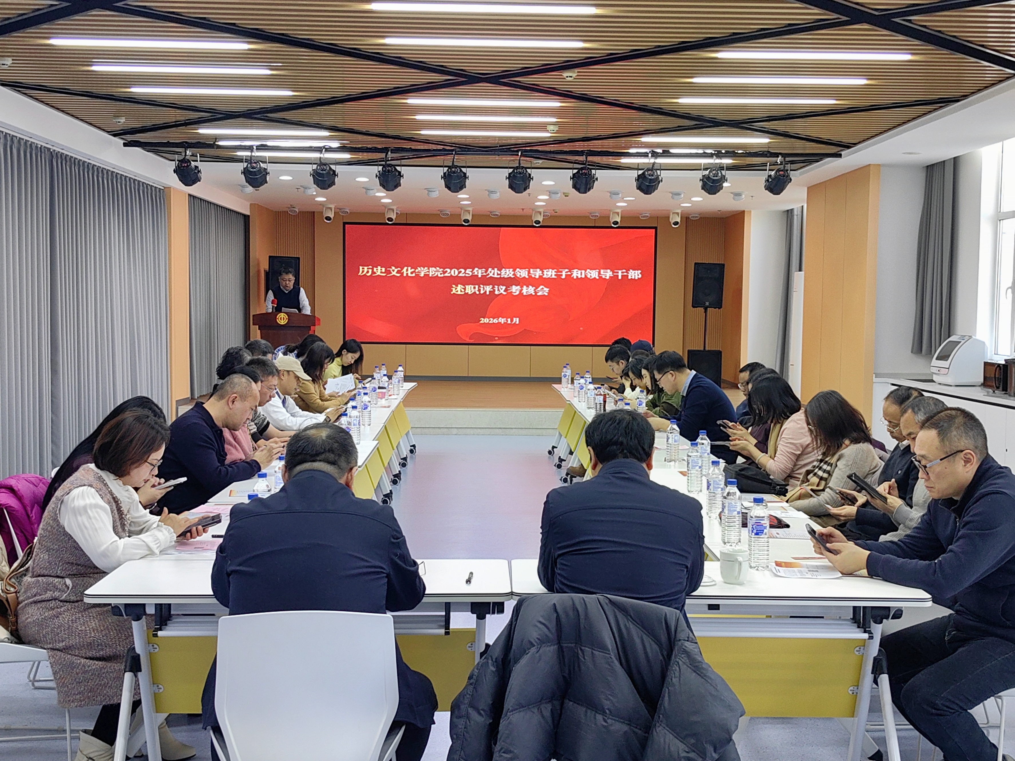 2026年1月5日下午,历史文化学院2025年度领导班子及领导干部考核述职测评会议在中心校区日新楼四楼工会之家顺利召开。学院党委书记兼院长韩喜平、常务副院长马卫东,学院领导班子成员及部分教职工代表参会,会议由党委副书记李羿主持。