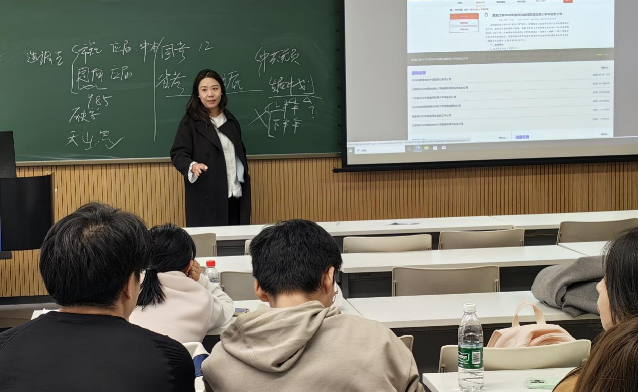 会上,王可佳老师首先为同学们梳理了各类实用就业资源,重点介绍了24365就业平台、学信网就业板块、吉林大学就业信息网等查询渠道,并告知大家近期学院将开展的公务员选调生培育、考研雅思培训、职业规划大赛等就业相关活动,鼓励有需求的同学积极参与、主动提升。