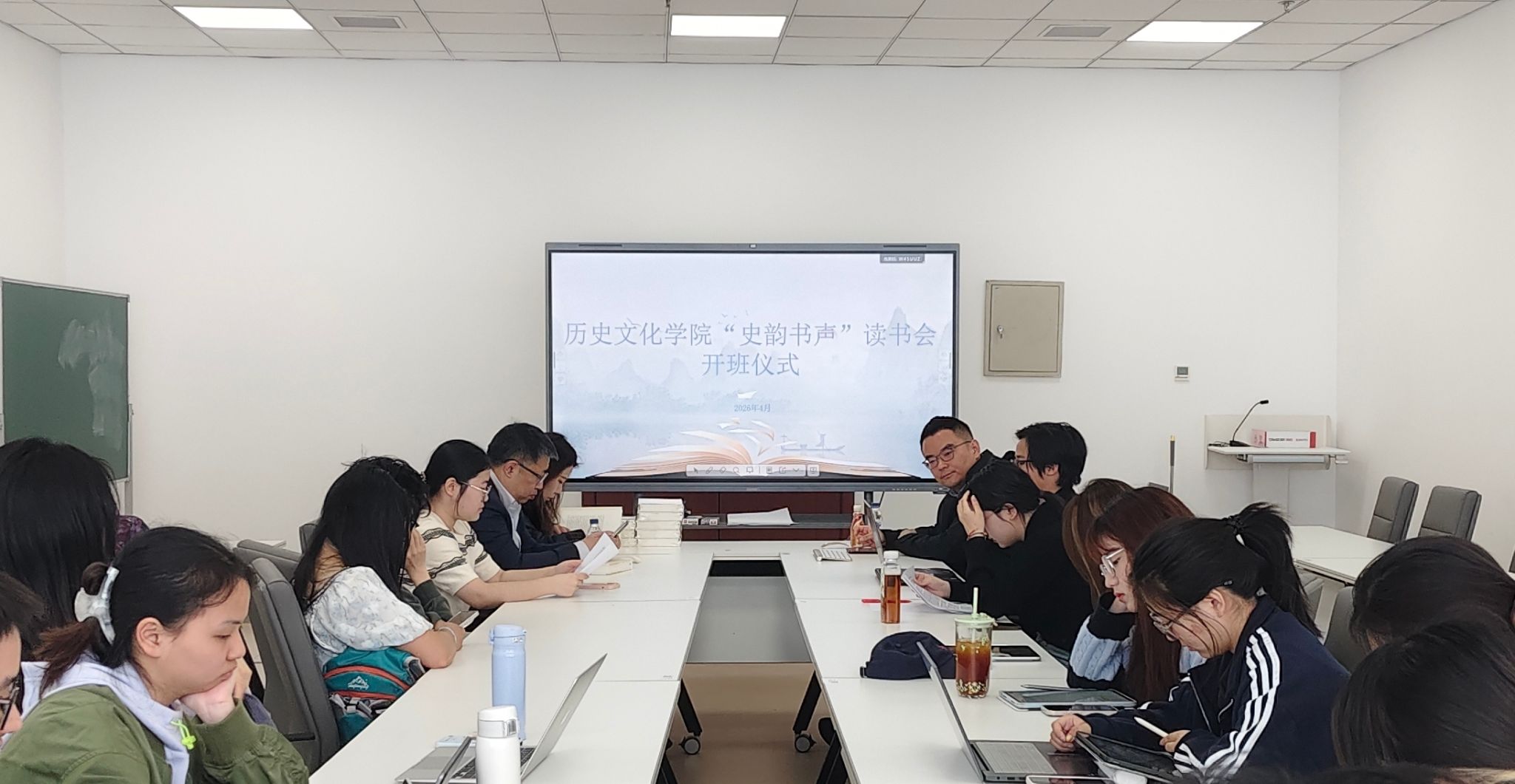 4月24日上午,正值首个“全民阅读活动周”,历史文化学院团委于中心图书馆203会议室举办“史韵书声”读书会开班仪式,涵养笃实学风,赓续书香文脉。本次分享会由学院学生会主席单乙雯主持,学院青年教师陈俊达担任本期主讲人,学院党委副书记李羿、学工办主任团委书记王可佳参加活动。